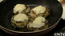 4.両面が焼けたら、最後にチーズをのせ、とろけさせる。 |