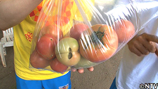 頂いたのは、傷があって出荷できないトマトと、収穫時期を逃し、大きくなりすぎたり、変形したキュウリ。