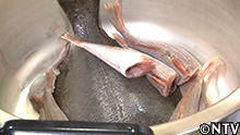 2.ヒラメ、カナガシラのウロコ、内臓をとり、 カナガシラは頭も落として鍋に入れる。 |
