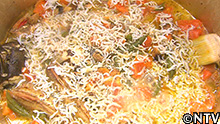 4.15分くらい煮て、冷凍焼けしたシラスを乗せて完成。 |