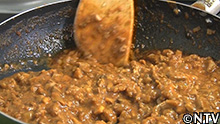 2.(1)をオイスターソース、砂糖、酒、醤油、味噌、ラー油を加えて炒める。 |