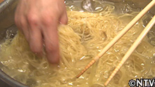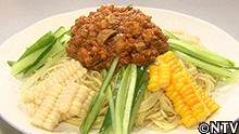 3.中華麺を茹でて、冷水で冷やして、器に盛り付ける。 |