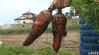 大きくなりすぎた規格外のニンジン、形が悪くて出荷できない大根、虫食いや黄色く変色したほうれん草、短くて出荷できないネギの4つを分けて頂いた。