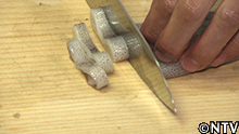 手作業でカットすると、長さにムラが出て商品にならないため、従業員も持ち帰らず捨ててしまうという。