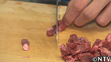 2.内臓と骨をとったイカを生のまま輪切りにし、ゲソをぶつ切りにする。 |