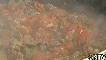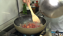 4.ニンニクをオリーブオイルで炒め、そこに長ネギ・牛タン・ミニトマトの順に加えて炒める。 |