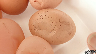 こちらの養鶏場では約2000羽の鶏が毎日卵をたくさん産むがケージに産み落とした際、その衝撃で割れてしまうものがある。