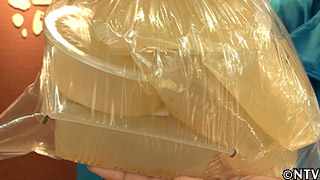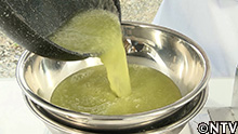 昔ながらの製法で、天草を4~5時間煮込み出来た液を12時間かけて自然冷却し、専用の容器に入れて、様々な形に押し出すのだが、加工の際、天草が入ってしまった物は捨ててしまうという。