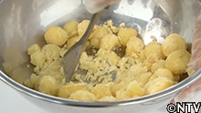 (2)皮をむいたジャガイモをつぶす。 |