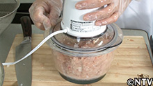 (2)フードプロセッサーで粗めのひき肉にする。 |