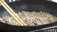 創業63年、リーズナブルな揚げ物が人気のお店で、ミンチにした豚の脂身をフライパンで20分熱して、毎日ラードを作っているのだが、その際に出る大量の油かすは、使い道もなく捨ててしまうという。
