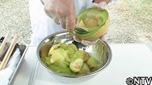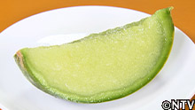 (6)ところてんが固まってきたらメロンの皮にうつし、カットすれば完成。 |