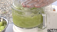 (2)メロンの果肉をミキサーにかけてジュース状に。 |