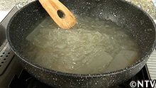 (3)ところてんをフライパンで加熱して溶かす。 |