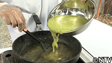 (4)10分ほど煮詰めて液体状になったら、メロン果汁を加える。 |