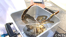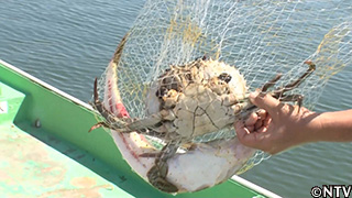 獲ったエガニは毎週、日曜市で販売しているが、ごく稀に爪がないエガニなども紛れており、商品にならないのでリリースしてしまうという。