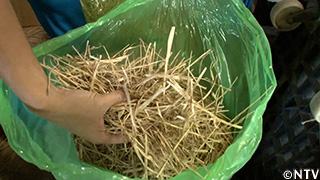 高知県産のお米を収穫した際の稲藁を、カツオの藁焼き用の藁として料亭などに出荷しているが加工の際に出る、短い藁や細い藁は使い道がないとのことで分けて頂いた。