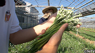 こちらでは、4棟のビニールハウスでニラを栽培。
