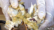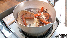 獲ったツガニは、直売所で販売する分以外は、自宅の池で生かしているが、弱ってしまったカニは処分するとのことで頂いた。