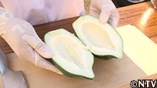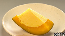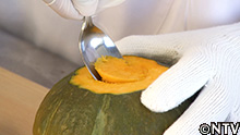 かぼちゃをレンジで温め、中身をくり抜く。 |