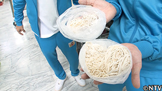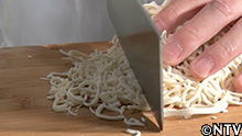 機械を使って製麺する際、複数の種類の麺が混じった麺の切れ端はこね直して再利用することができないため、捨ててしまうということで頂いた。