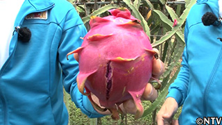 熟して割れたドラゴンフルーツ、農園に落ちていた鴨の卵