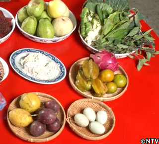 キャベツの外葉や傷ついたエーサイ、間引きしたネギや台湾バジル、熟して落ちてしまったスダチやスターフルーツは家でも食べないということで分けて頂いた。