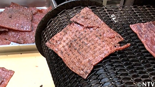 ジャーキーを専用の機械で焼いていく際、どうしても出てしまう焦げた部分は、持ち帰ることもなく捨ててしまうということで分けて頂いた。