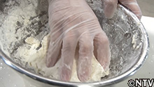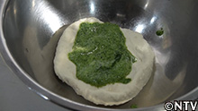 ペースト状になった台湾の野菜を生地に混ぜ込み、ボウルに布巾などをかぶせ30分程度寝かせる。 |