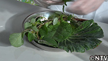 台湾バジル、皇宮菜、キャベツの外葉を手でちぎり、フードプロセッサーでペースト状にする。 |