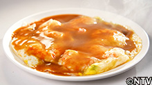 両面焼いたら、お皿に移してソースをかけると完成。 |