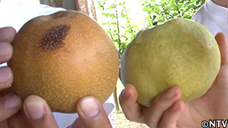 収穫時期は毎日1000個の梨を収穫しているのだが、鳥や虫に食べられたり枝に擦れた梨は傷ついてしまい、それらは捨ててしまうという。