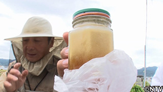 ハチミツを搾り取る際に出てくる泡は、花が少ない時期のミツバチの餌にしているというが、ミツバチにあげる分は十分残っているという。