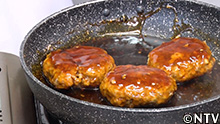 7.焼いたハンバーグに照り焼きソースを絡める。 |