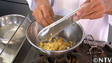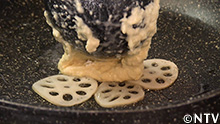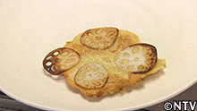 10.油をひいたフライパンにスライスしたレンコンを入れ、その上に(9)をかける。 |