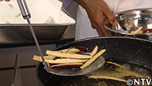 1.サツマイモとジャガイモを細く切り、油で揚げて素揚げに。 |