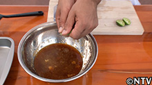 2.醤油、しぼったすだちを入れて漬けダレにする。 |