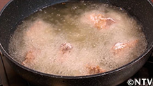 4.漬けダレがしみ込んだら、衣をまぶして油で3分揚げて完成。 |