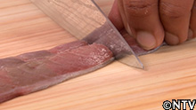 3.ブリのアラを食べやすいサイズに切る。 |