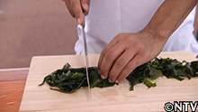 5.水で戻したワカメを一口大に切る。 |