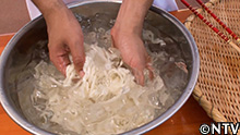 7.お湯を切ったうどんを冷水でしめる。 |