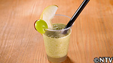 1.小さく切った梨と少し凍らせたシャインマスカットをミキサーでスムージーに。 |