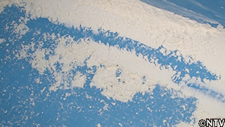 南部せんべいを作る際に使うせんべい粉は、練り上げる際にケースの端っこに残ってしまう。