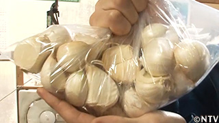 皮がめくれてしまったニンニクは変色してしまい、出荷できないという。