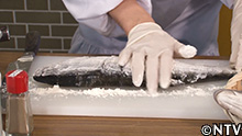 1.ウグイに隠し包丁を入れ、塩、コショウ、小麦粉を馴染ませる。 |