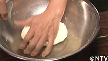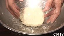 3.生地がまとまったら、丸く形を整え、ラップをかけて寝かせる。 |