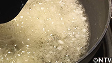 6.みじん切りにしたニンニクをオリーブオイルで炒める。 |
