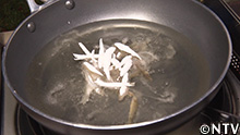 3.小さく切ったゴボウとニンニクを炒める。 |