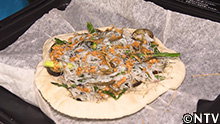 10.焼きあがったピザの上に(9)をトッピング。 |
