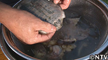 1.すっぽんを包丁で切り分け、お湯で臭みをとる。 |